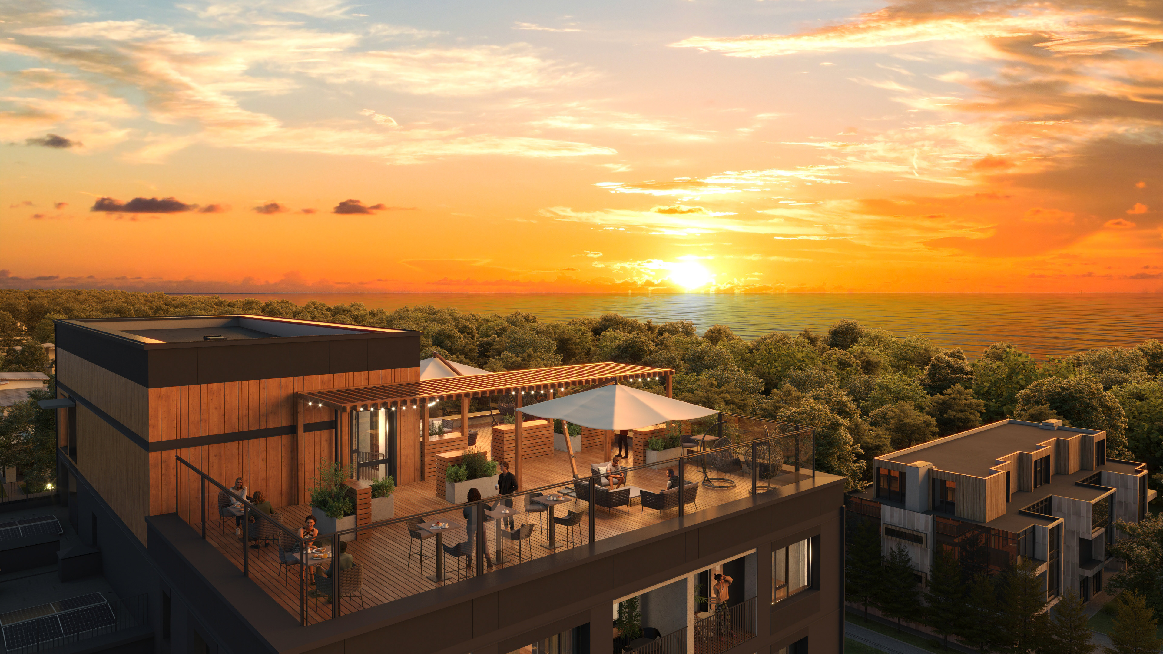 MODERN RESIDENTIAL COMPLEX ON THE FIRST COASTLINE IN JŪRMALA OFFERING 112 FULLY FINISHED APARTMENTS AND LOFTS, DESIGNED WITH A FOCUS ON SUSTAINABILITY, PANORAMIC VIEWS, SHARED ROOFTOP TERRACE, MULTIFUNCTIONAL LOBBY AND WELL-PLANNED INFRASTRUCTURE FOR A HIGH-QUALITY SEASIDE LIVING EXPERIENCE.