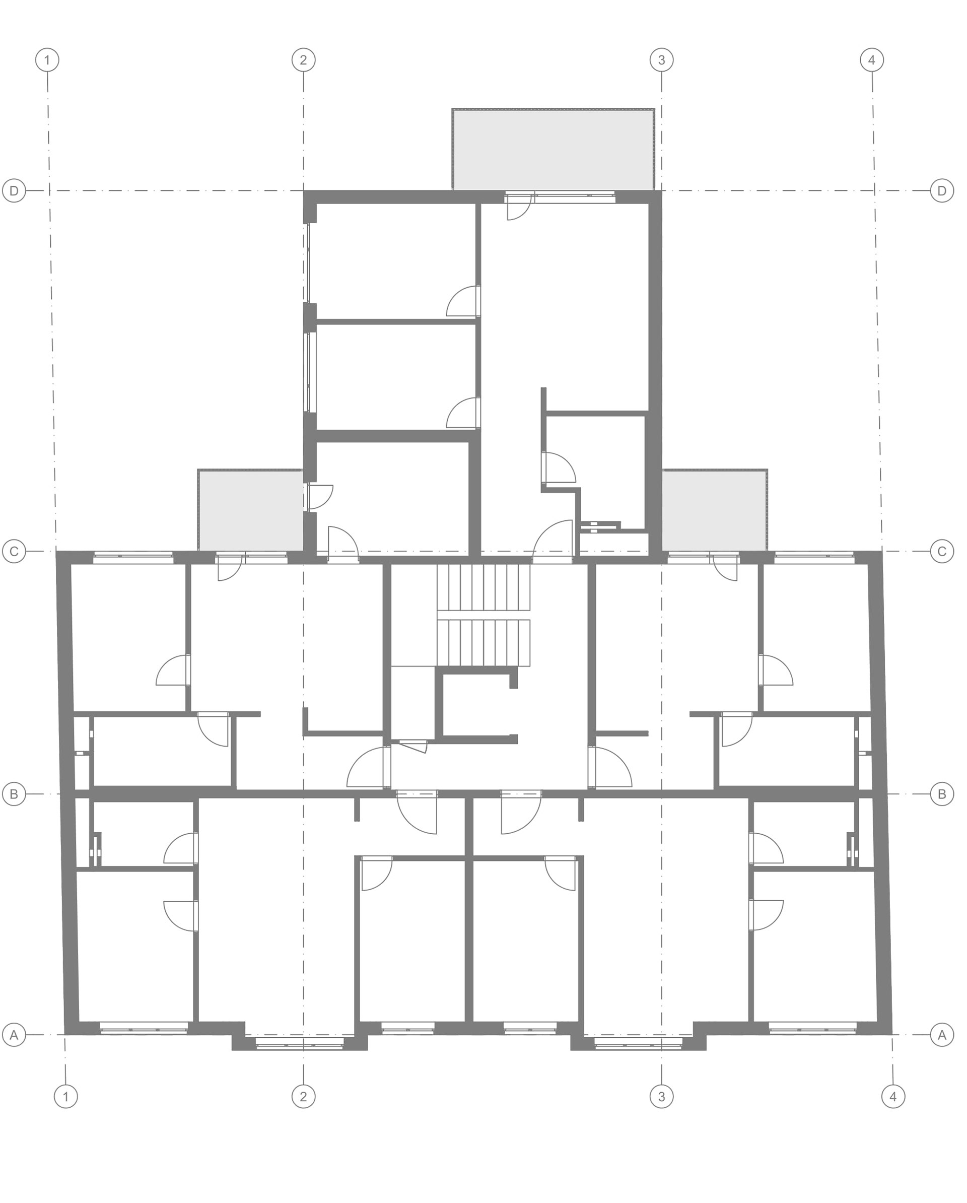 Apartments with large windows, balconies, and upper-floor terraces offer both comfort and privacy. Shared spaces, bicycle storage, and other amenities are available on the ground floor, making this building an ideal place to live for those who appreciate modern architecture and an excellent location in the Brasa neighborhood.