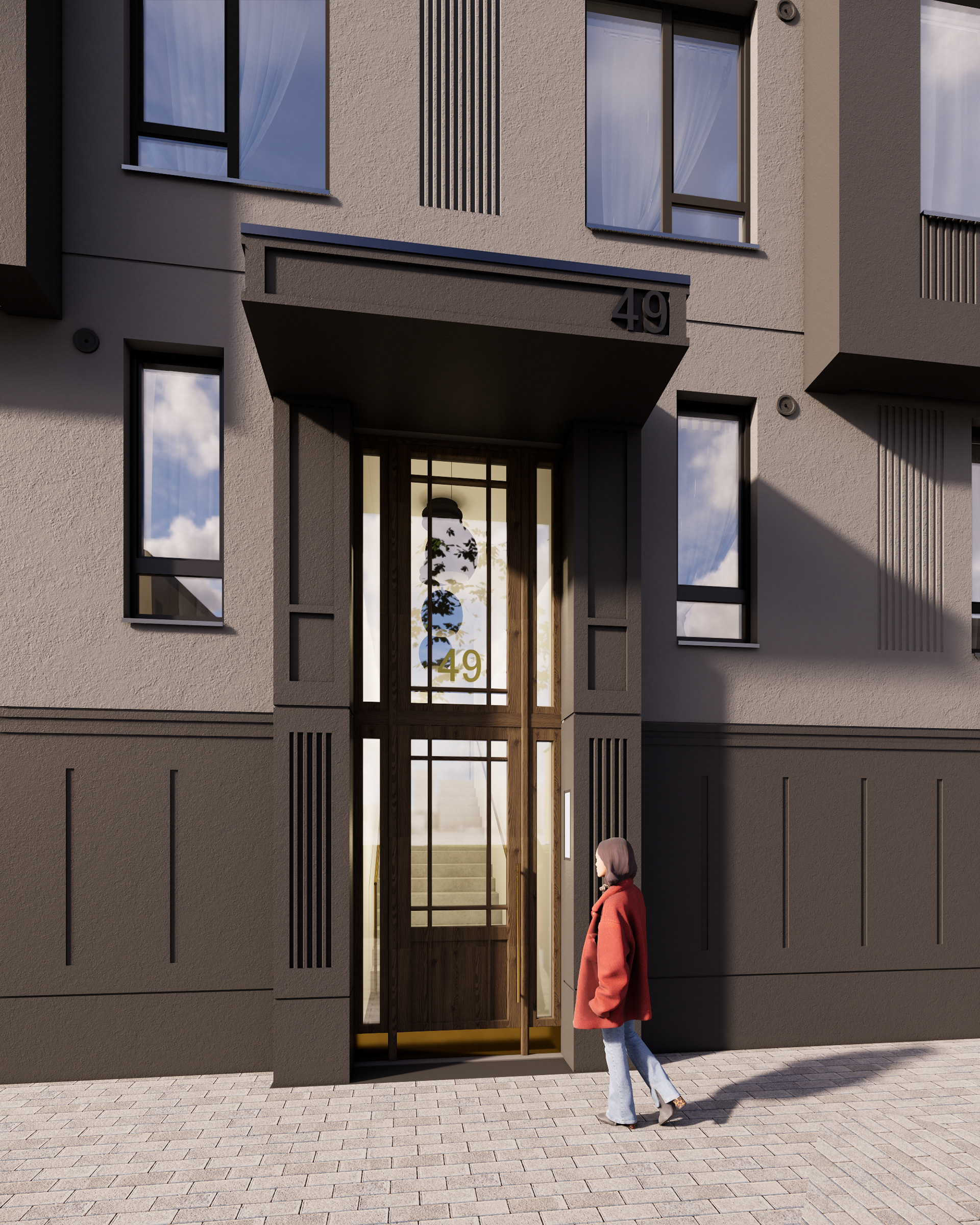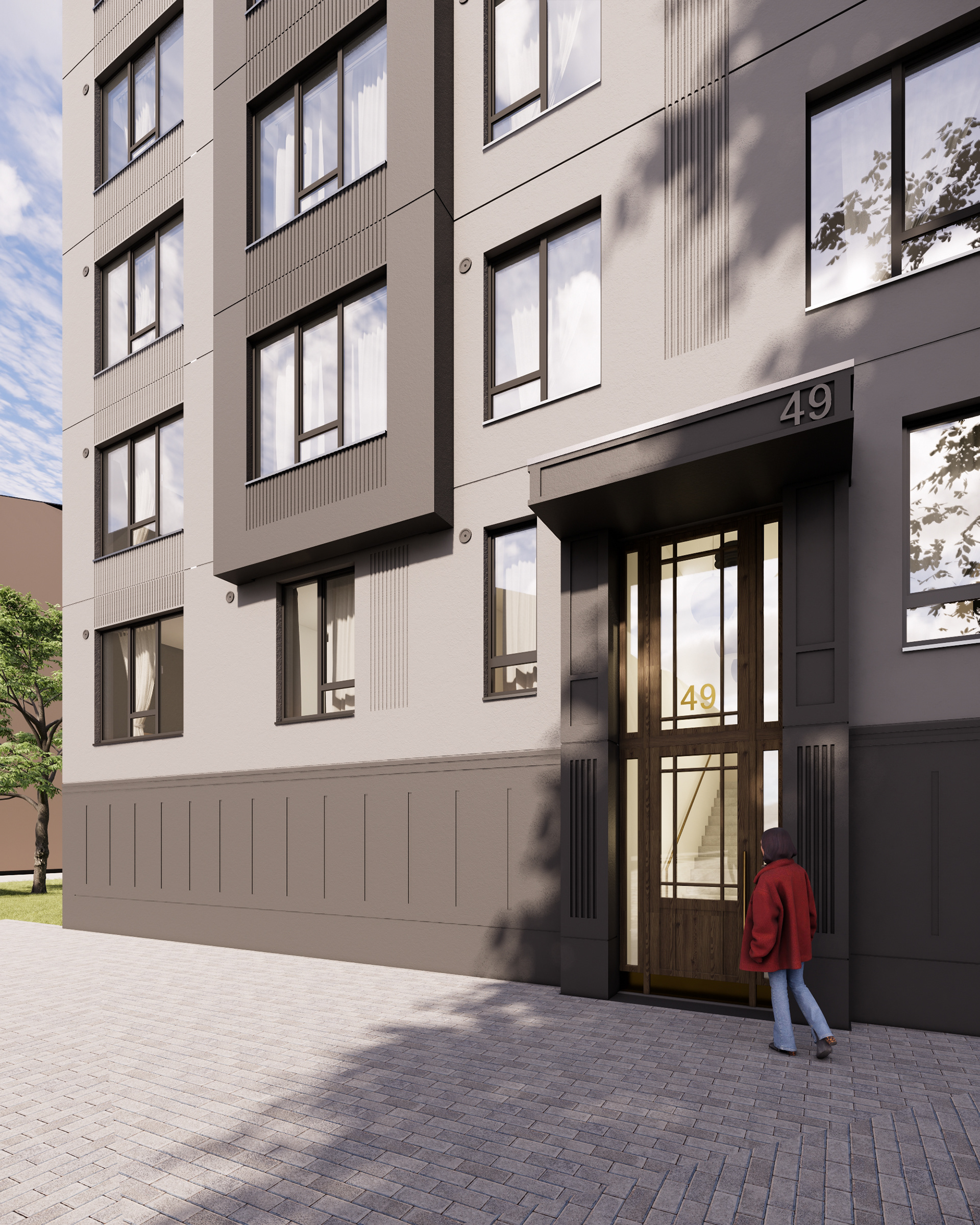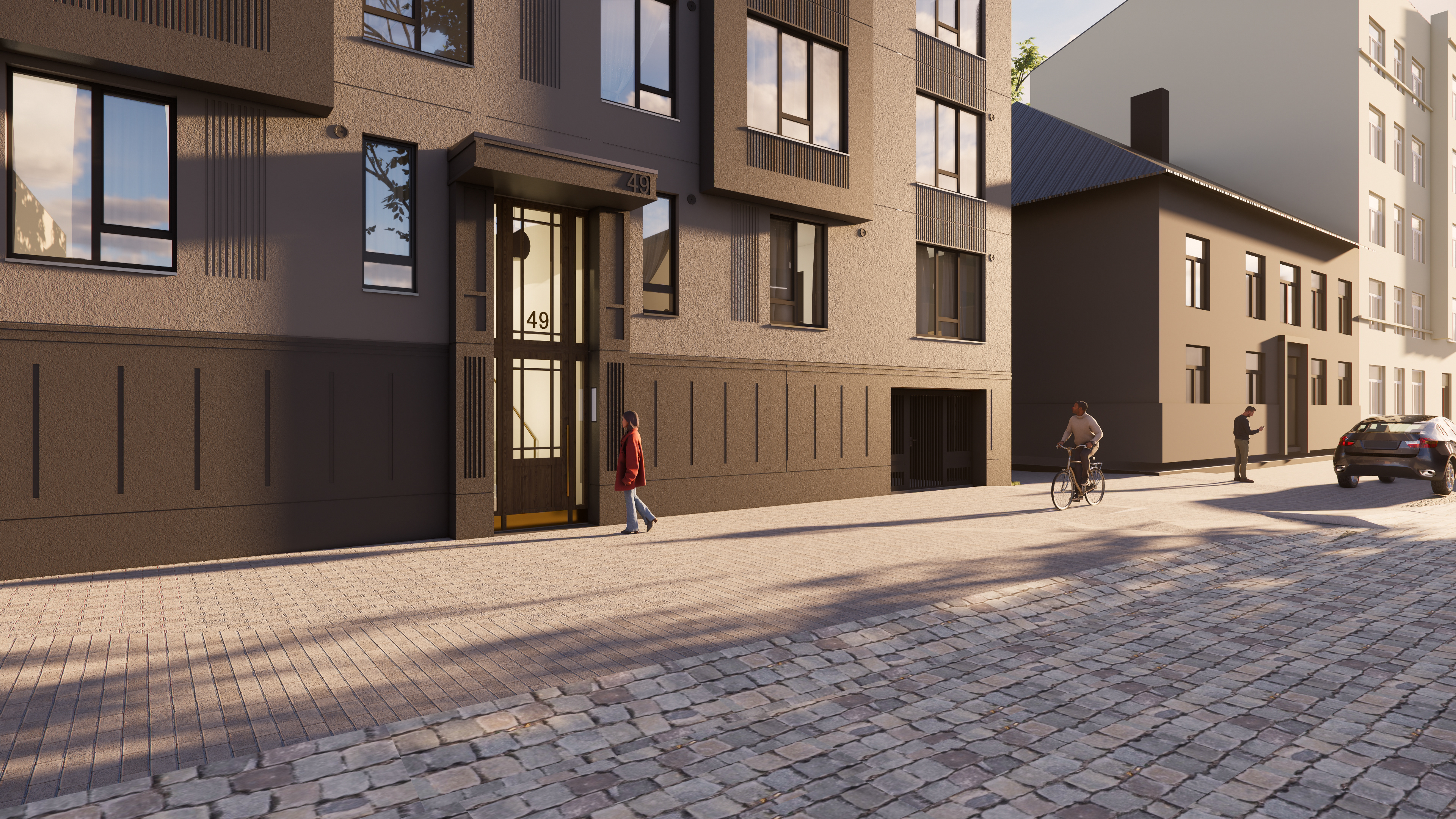 Hospitāļu Street 49 is an aesthetic and functional residential project created to meet the needs of modern life. The building's T-shaped layout combines practicality and elegance, while the facade, with its sophisticated finishing materials and harmonious color palette, gives it a unique character.