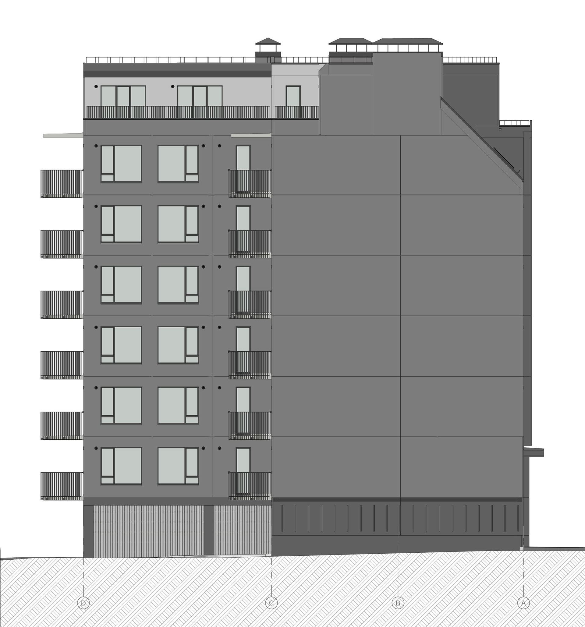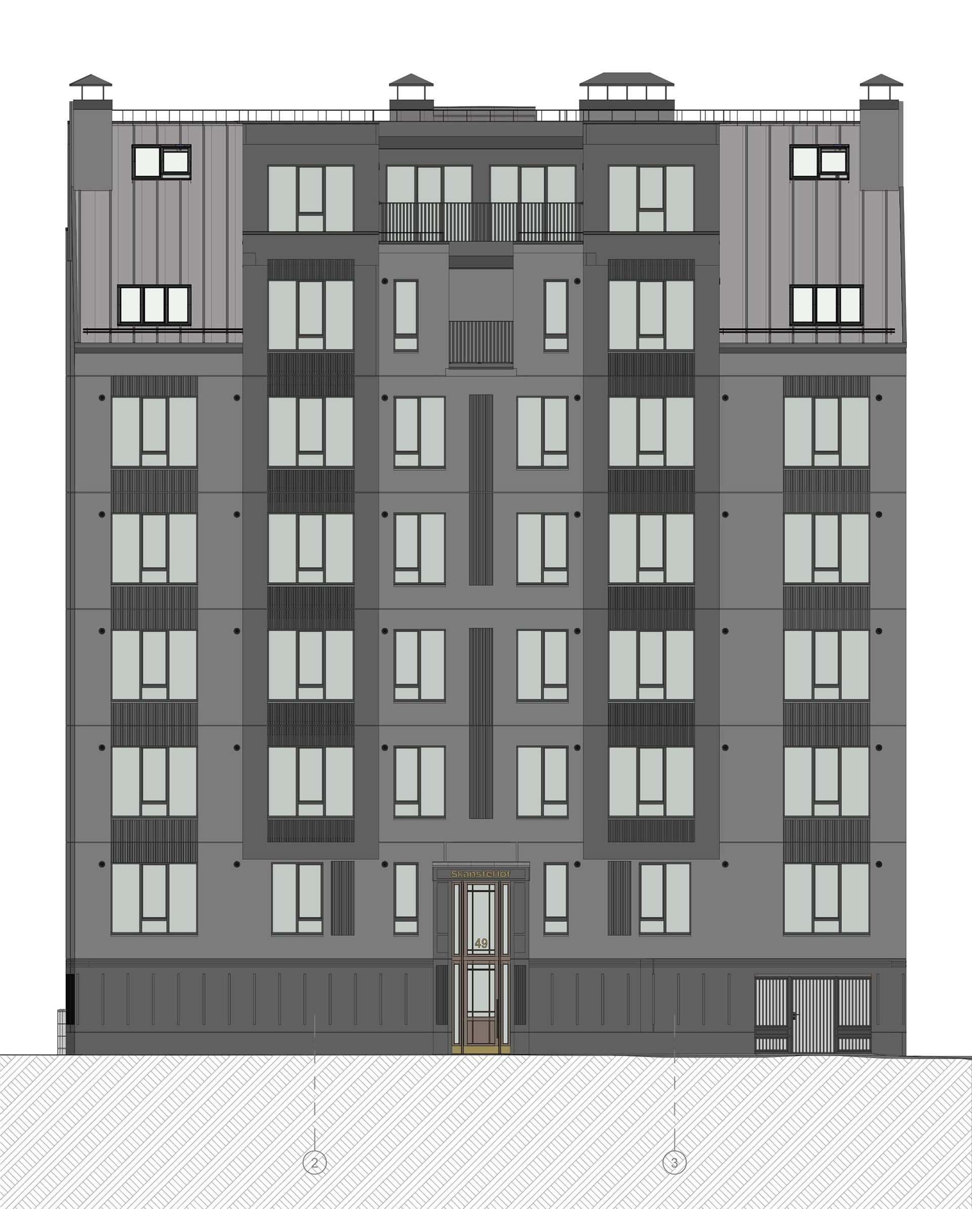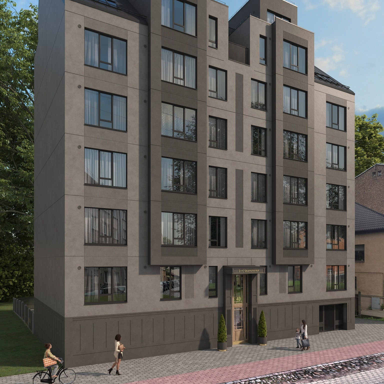 Hospitāļu Street 49 is an aesthetic and functional residential project created to meet the needs of modern life. The building's T-shaped layout combines practicality and elegance, while the facade, with its sophisticated finishing materials and harmonious color palette, gives it a unique character.