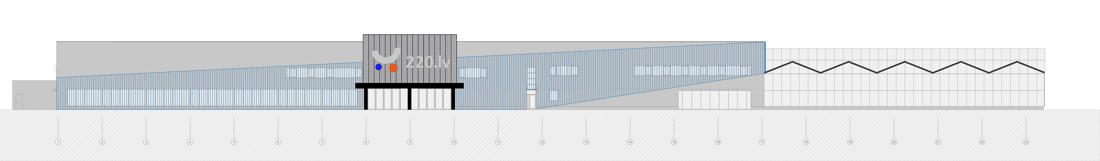 The commercial center is a Group III building, designed as a single-story structure with a second level on the first floor. The building consists of two connected volumes. The total area of the building is 6725.36 m², of which 2419.07 m² is included in the reconstruction project.