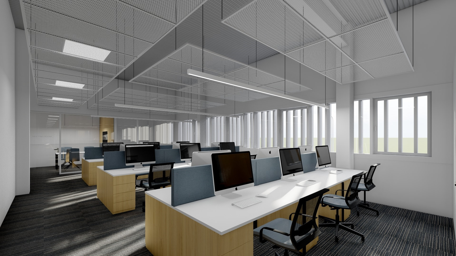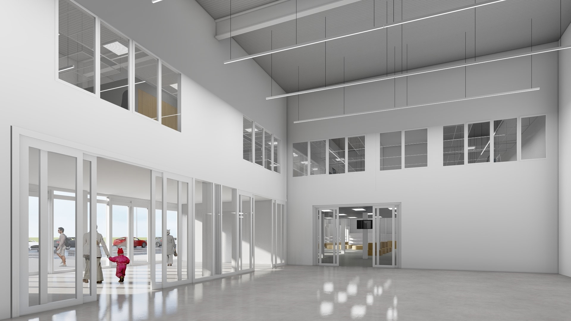 The project involved a replanning of the premises, including the modification of partition walls, doors, windows, and display windows.