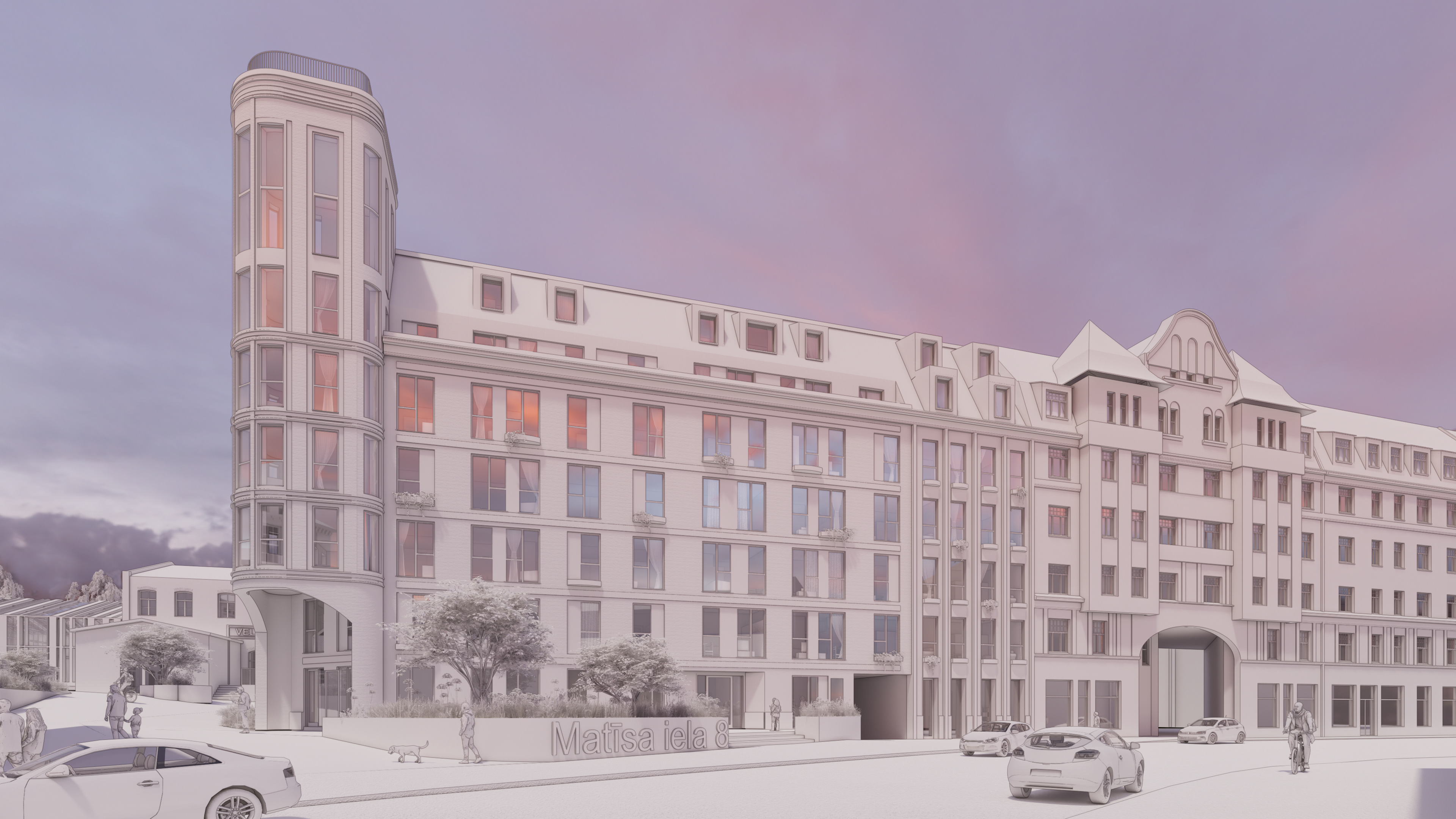 THE PROPOSAL FOR MATISA STREET 8 ENVISIONS TWO MULTI-STOREY RESIDENTIAL BUILDINGS WITH COMMERCIAL PREMISES, UNDERGROUND PARKING, AND LANDSCAPED COURTYARDS. THE DESIGN RESPECTS HISTORIC INDUSTRIAL ARCHITECTURE WHILE INTRODUCING MODERN ELEMENTS SUCH AS A TOWER VOLUME, CONTRASTING MATERIALS AND OPEN PUBLIC ACCESS FROM THREE DIRECTIONS.