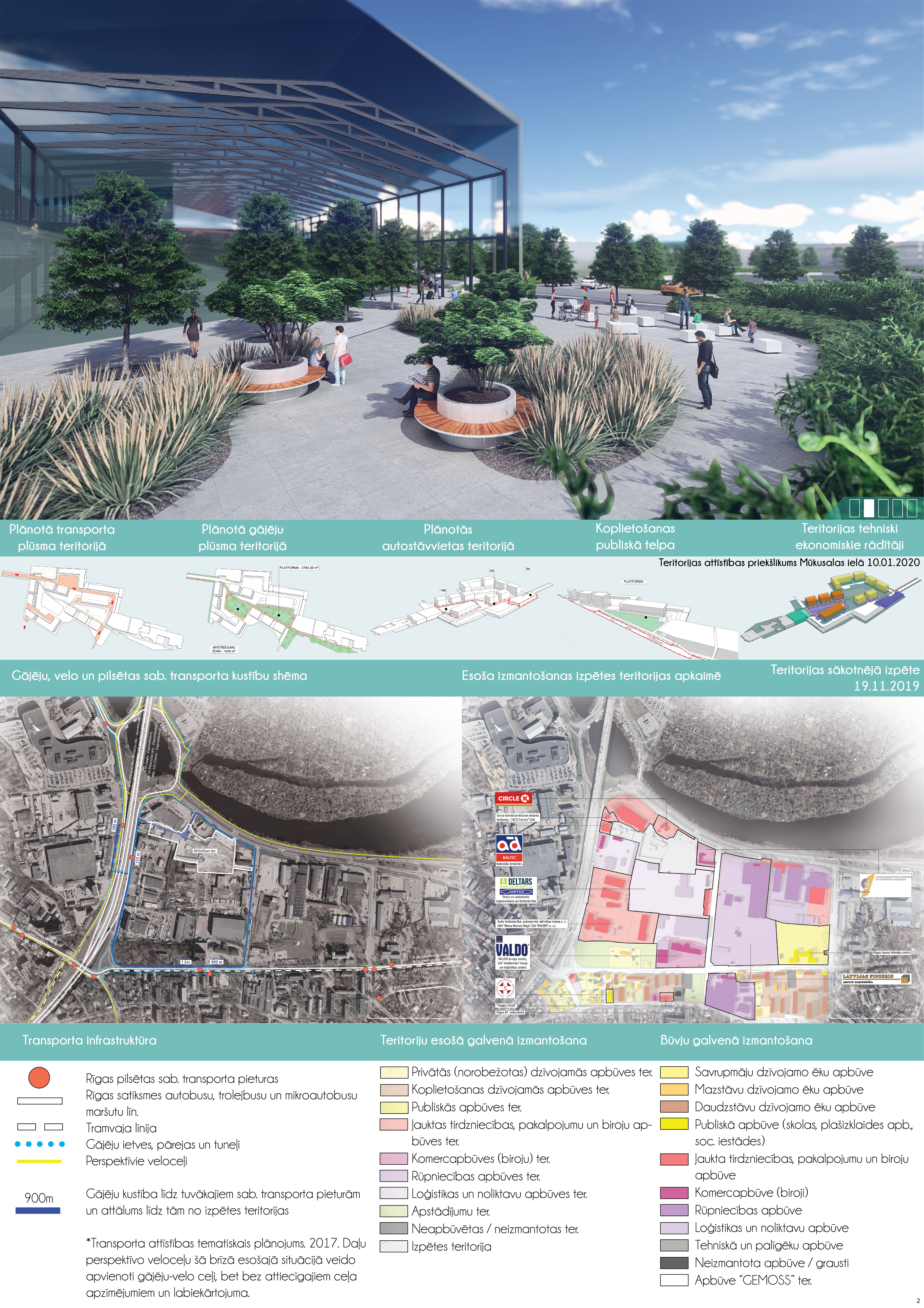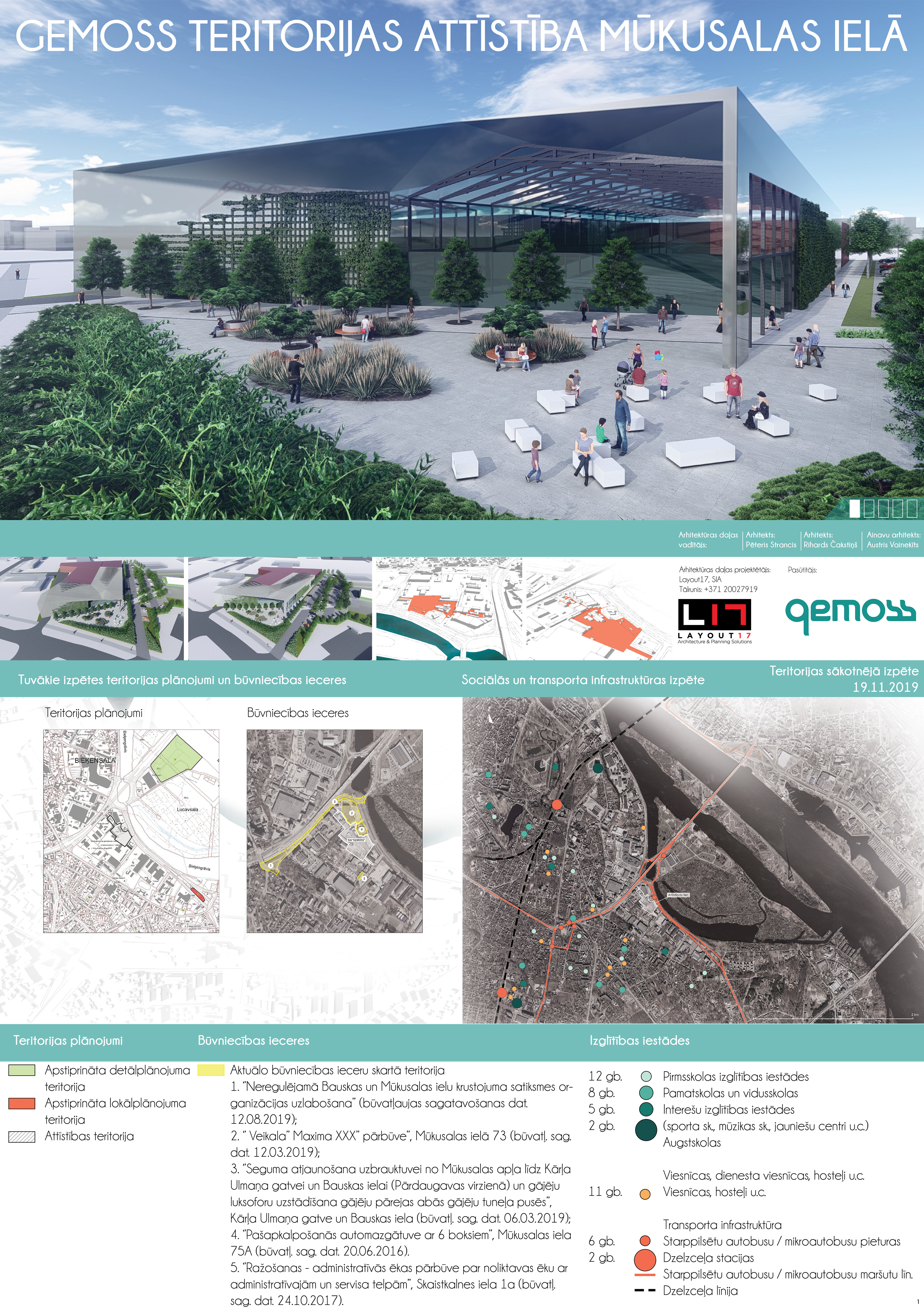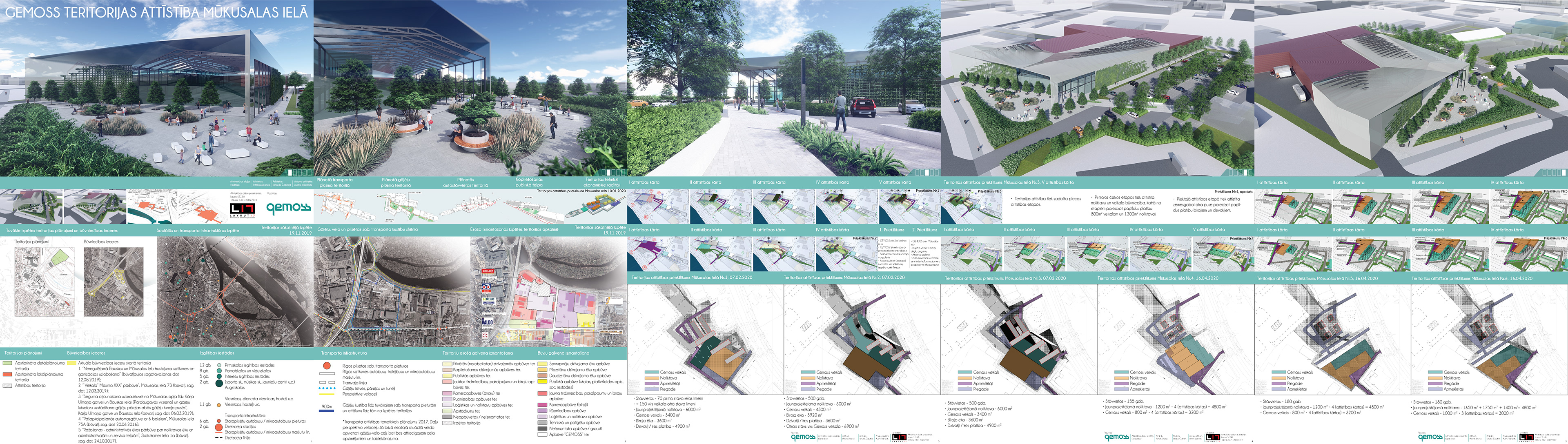The RESEARCH area at Mūkusalas Street 75A is located next to the Salu Bridge, near the Mūkusalas Street roundabout. The area contains the Gemoss restaurant supply store as well as several warehouses and ancillary buildings. The work involved an analysis of the existing situation within the context of the surrounding blocks, and several development concepts for the territory were created.
