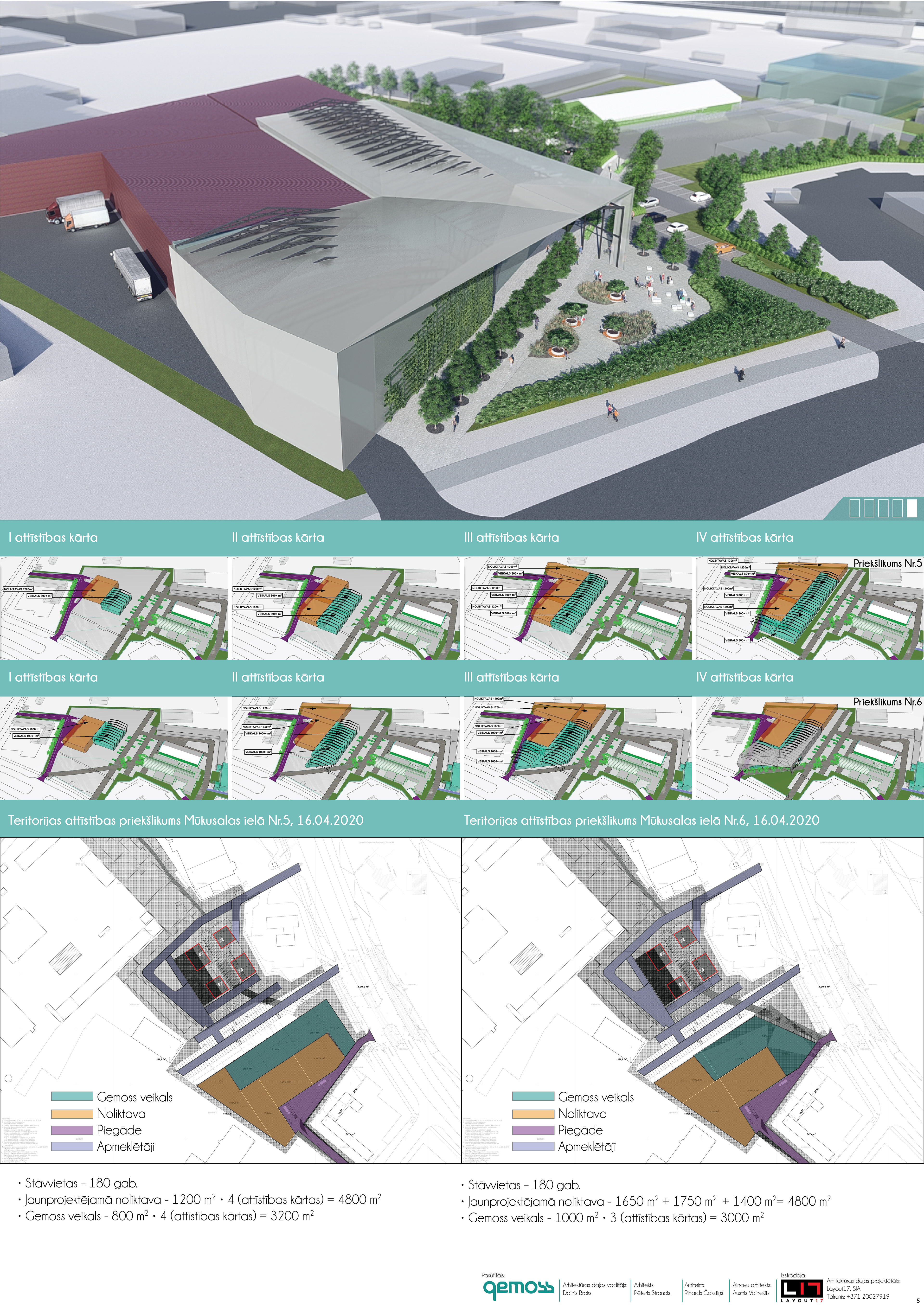 The final development concept envisions the preservation and expansion of the existing Gemoss store, the creation of new warehouses, and the construction of a new commercial center with warehouses and a significant proportion of green space in its landscaping. A draft project for the territory was developed and approved based on this development proposal, and the design for the planned commercial and warehouse center has now begun.