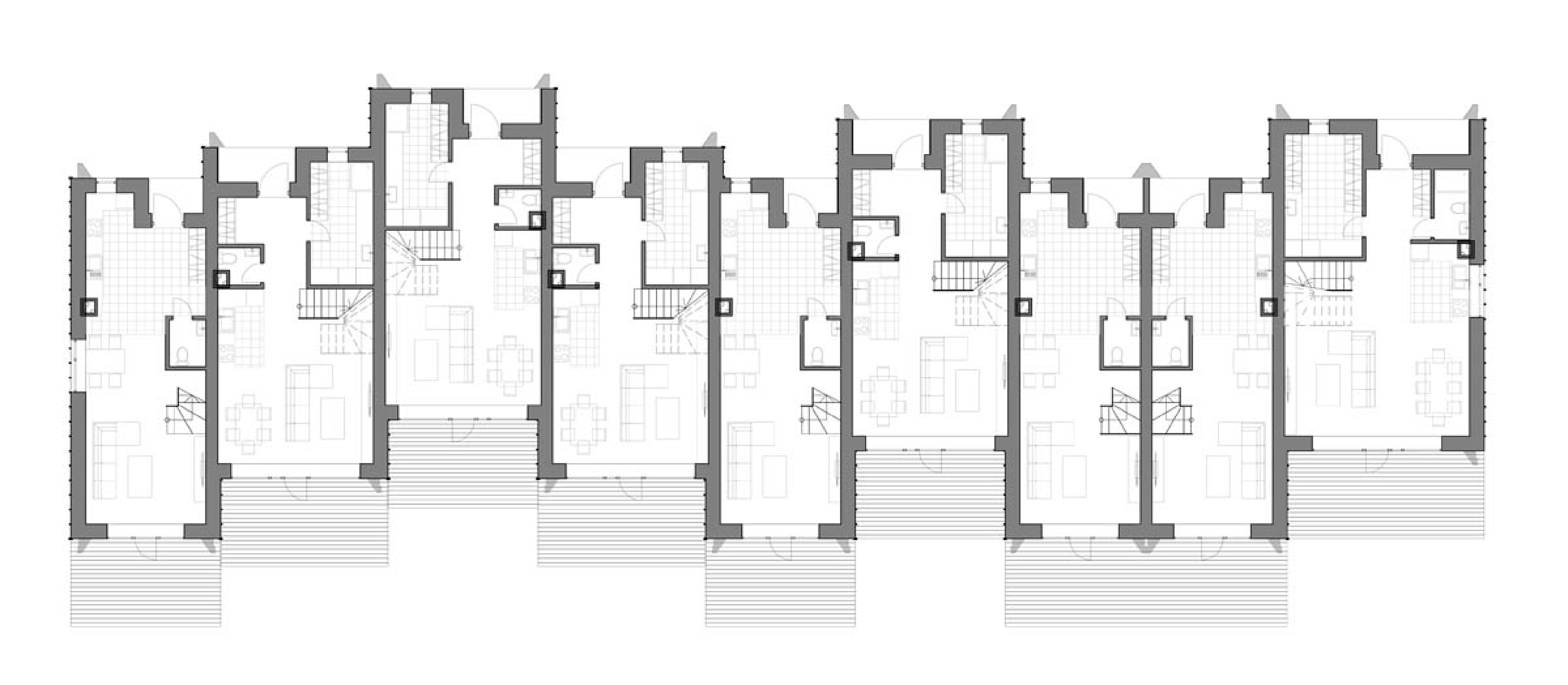 The detailed plan was developed by taking into account the plans for neighboring plots and the planned street infrastructure. One of the neighboring detailed plans was developed simultaneously with this plan. During the development of the detailed plan, a draft design and a minimum-scope construction project were also developed and approved for the planned row house development.