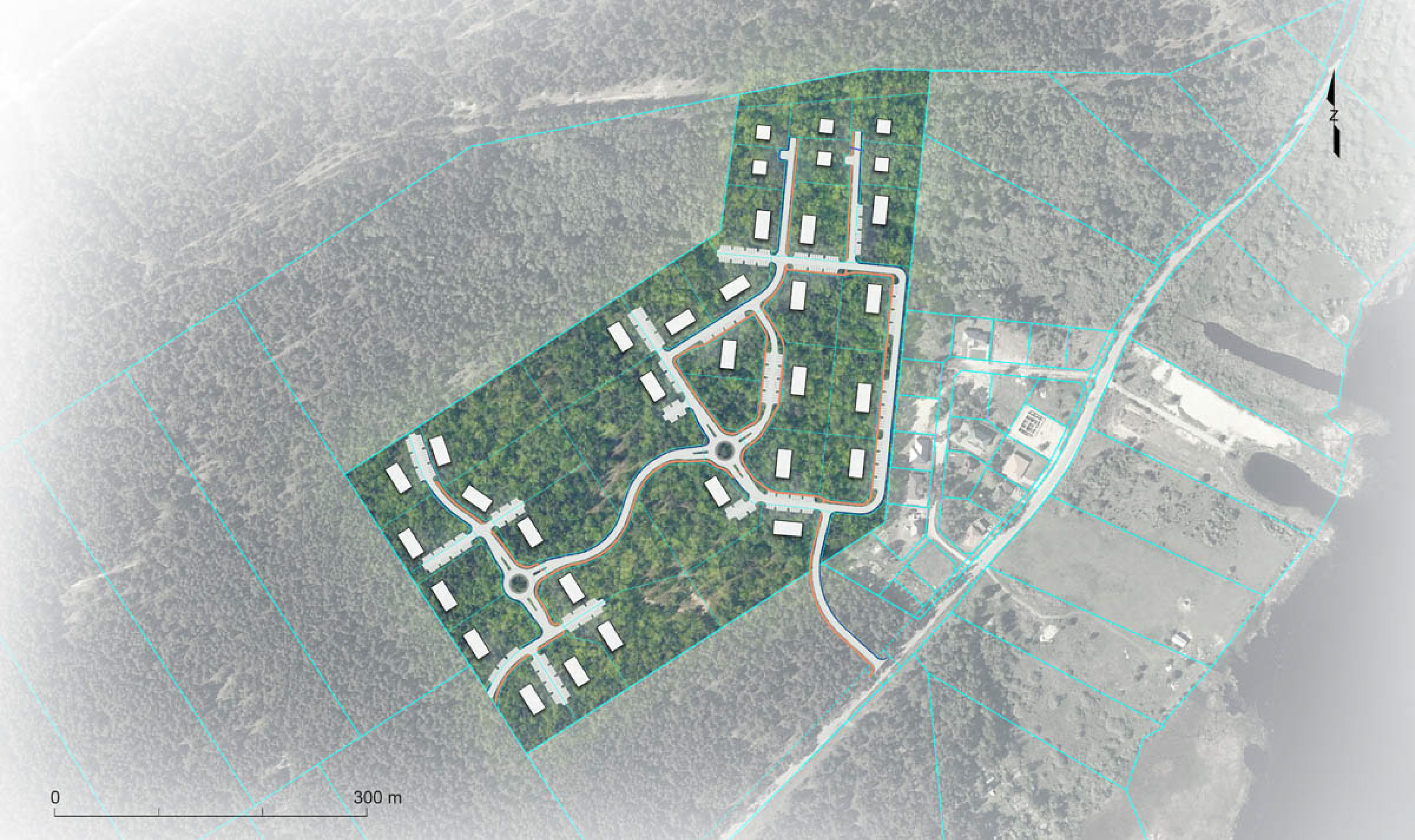 In contrast, the planned street is positioned to avoid affecting existing landforms. In consultation with specialists from LLC Procesu analīzes un izpētes centrs, conditions were defined to mitigate flood risk within the detailed plan area. Concurrently with the development of the detailed plans, a draft design was also created, and a minimum-scope construction project was approved for the planned low-rise apartment buildings and private homes.