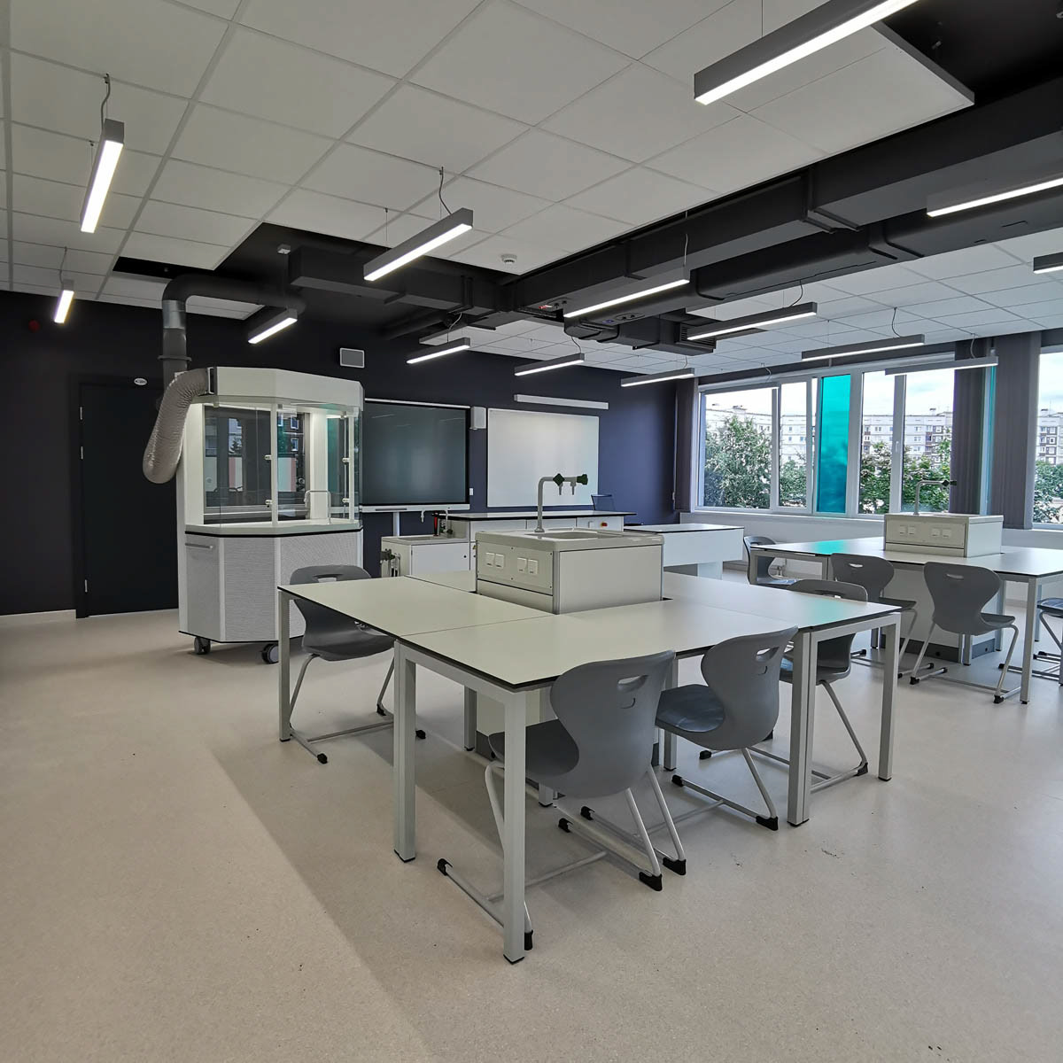 Upon the request of the Riga City Council Property Department, Layout17 developed a sketch design in 2018 for a standard laboratory building annex to be used by educational institutions. Based on this sketch design, between 2018 and 2020, under the supervision of the construction company LLC VELVE the design and construction of two laboratory annexes were completed at Riga State Classical Gymnasium and Riga Zolitūde Gymnasium.