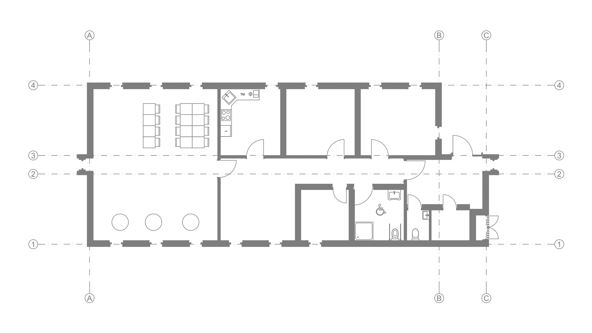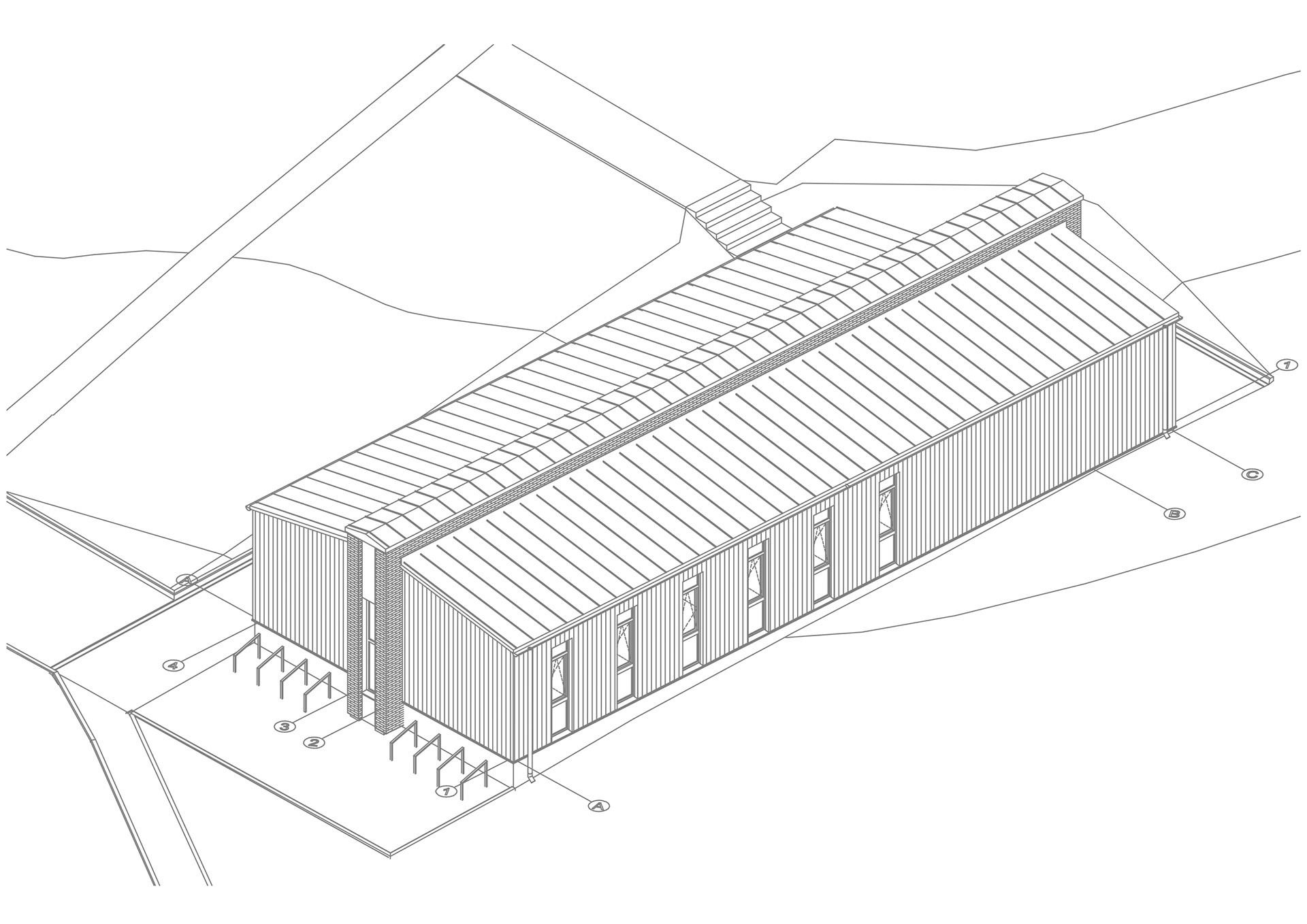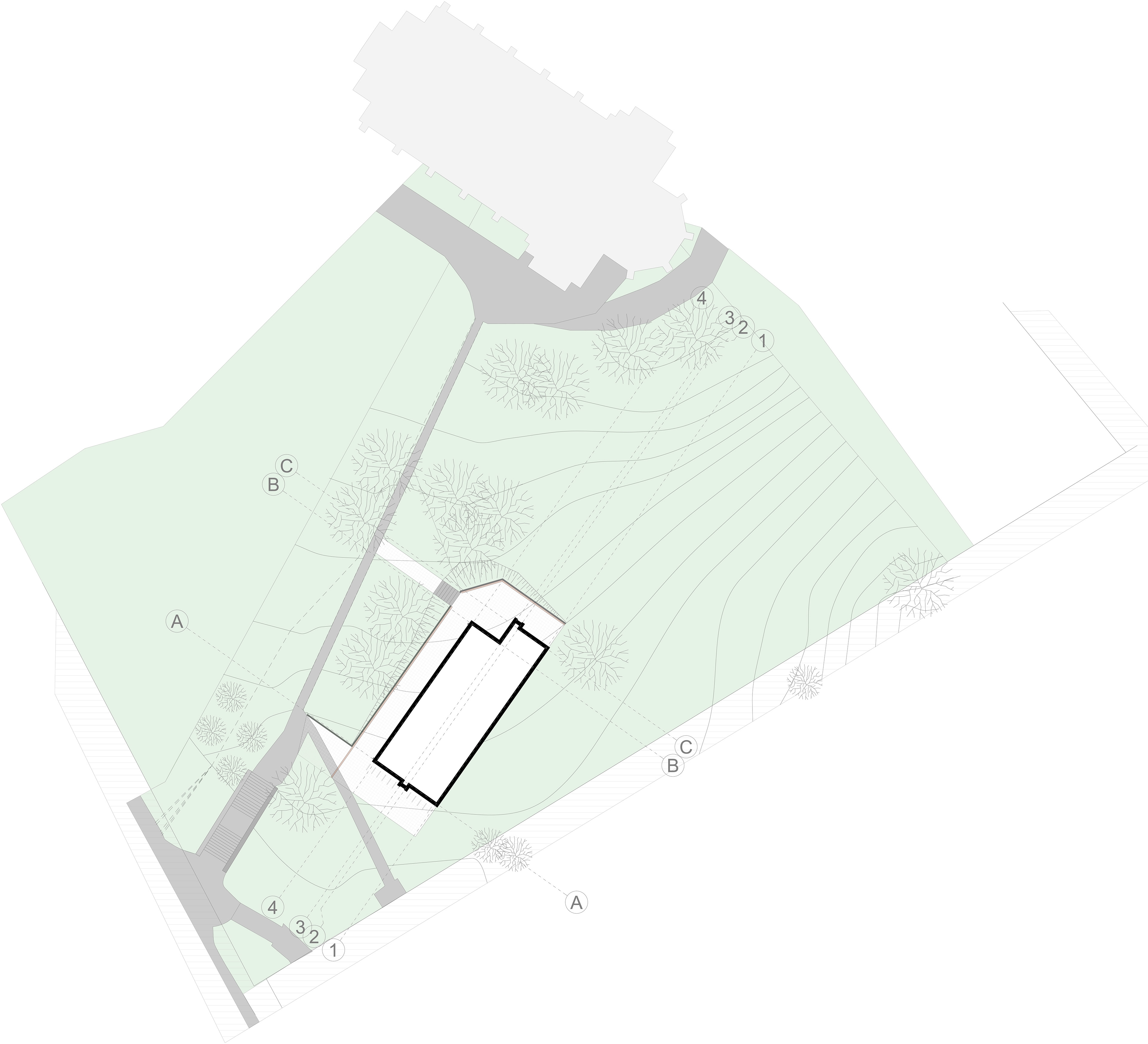 The Parish House was designed to be located on the grounds of the Holy Trinity Lutheran Church, respecting the terrain's characteristics, which allow the building to be placed lower than the church, making it less visually prominent. The project ensures environmental accessibility and natural light in all rooms. The single-story building has a minimalist design that harmoniously complements the church complex.